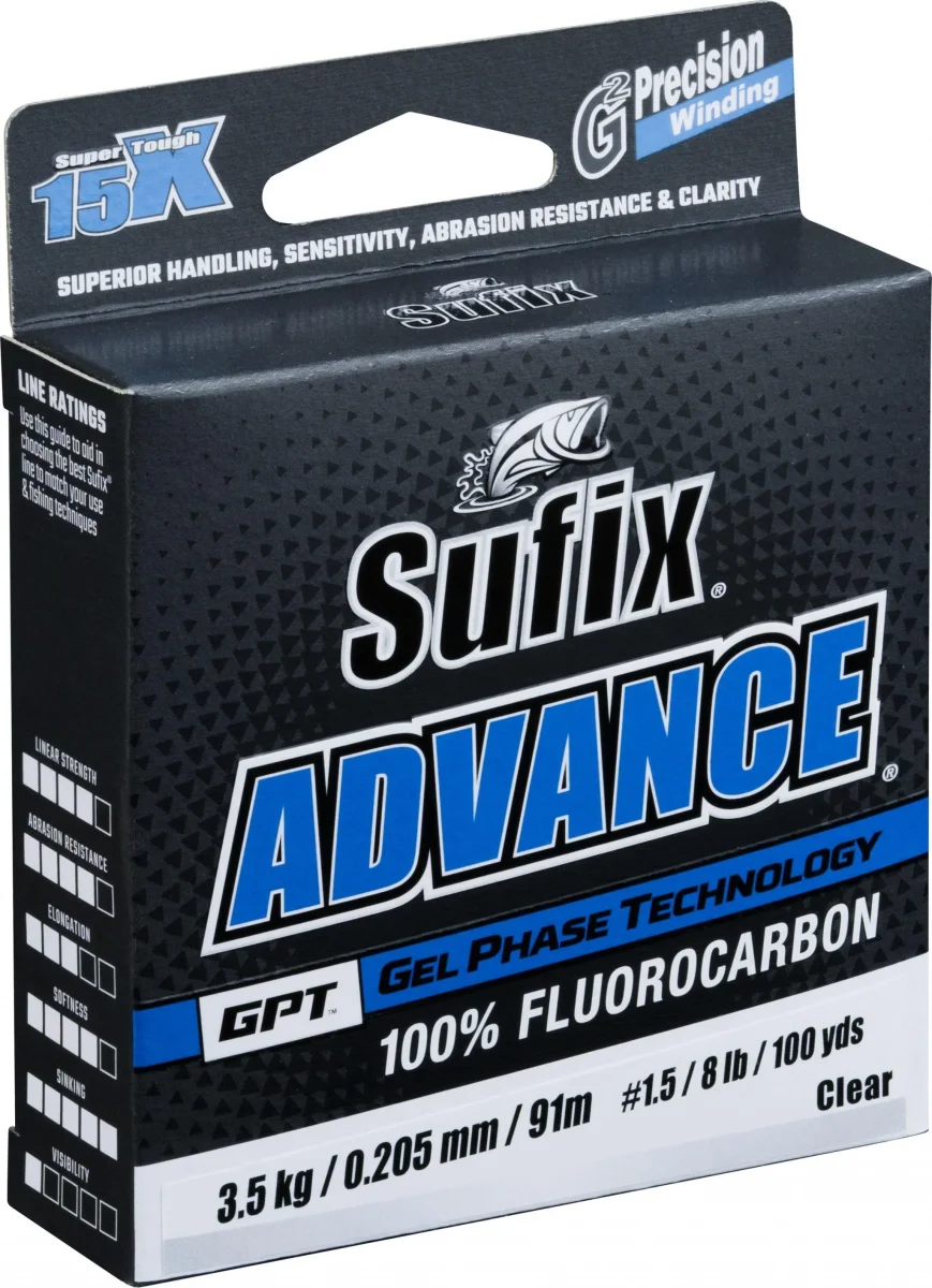 Le process de fabrication Proprietary gel phase technology™ apporte une souplesse, une performance et une transparence indispensable pour les pêches les plus techniques. L’amélioration du fluoropolymer à travers un processus très précis permet d’obtenir un fluorocarbone souple, très tactile et avec une forte résistance à l’abrasion. 100% fluorocarbone & invisible sous l’eau. Densité 4 fois supérieur à un nylon pour atteindre la zone de touche plus rapidement. La technologie de bobinage à spires jointives G2 Precision Winding™ associé aux propriétés du fluorocarbone permet d’obtenir un fil sans aucune mémoire.