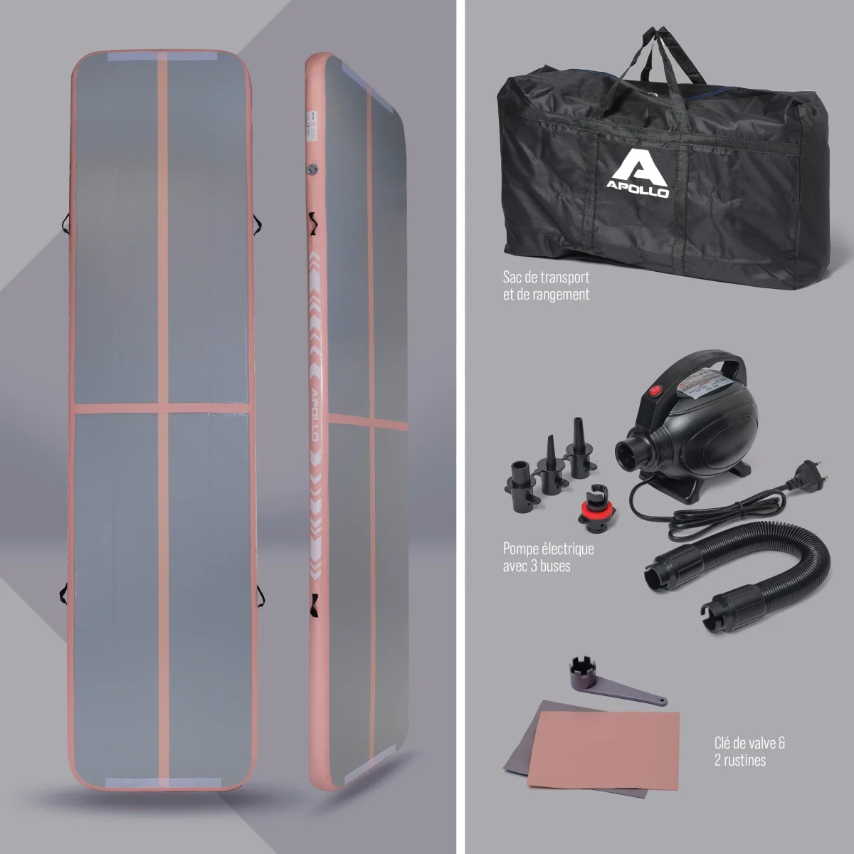 Découvrez l’Apollo Air Mat Pro polyvalent et de haute qualité, disponible en deux tailles pratiques : 3 mètres ou 4 mètres de long.
