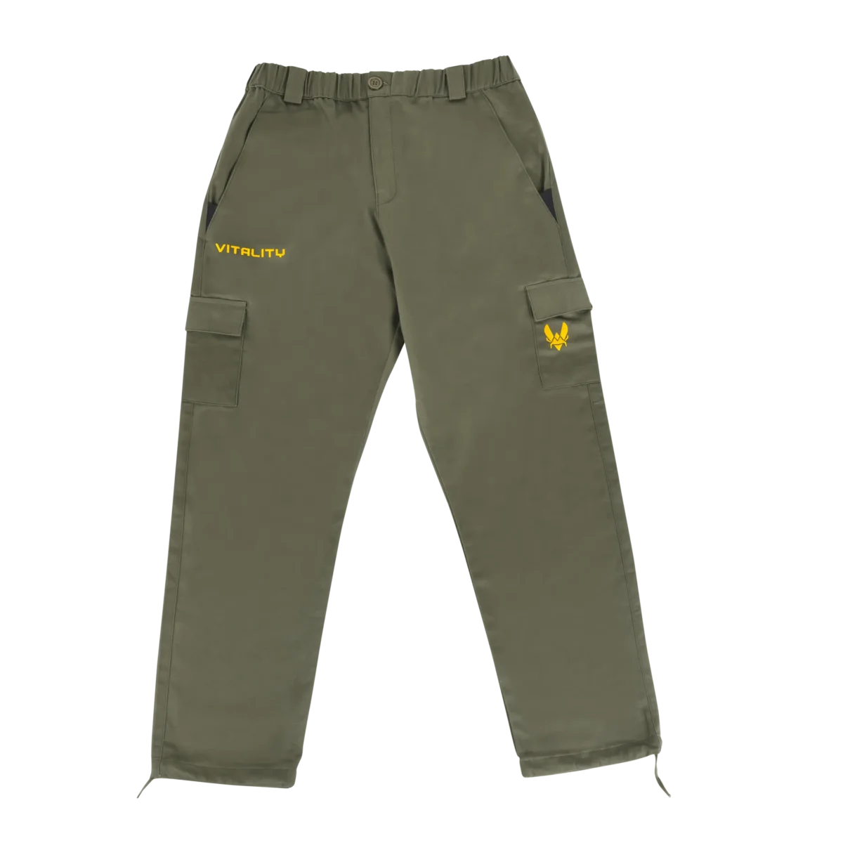 Cargo Watch Us : cargo esports streetwear vert, multi-poches & cordons de serrage, broderie abeille & logo Team Vitality.