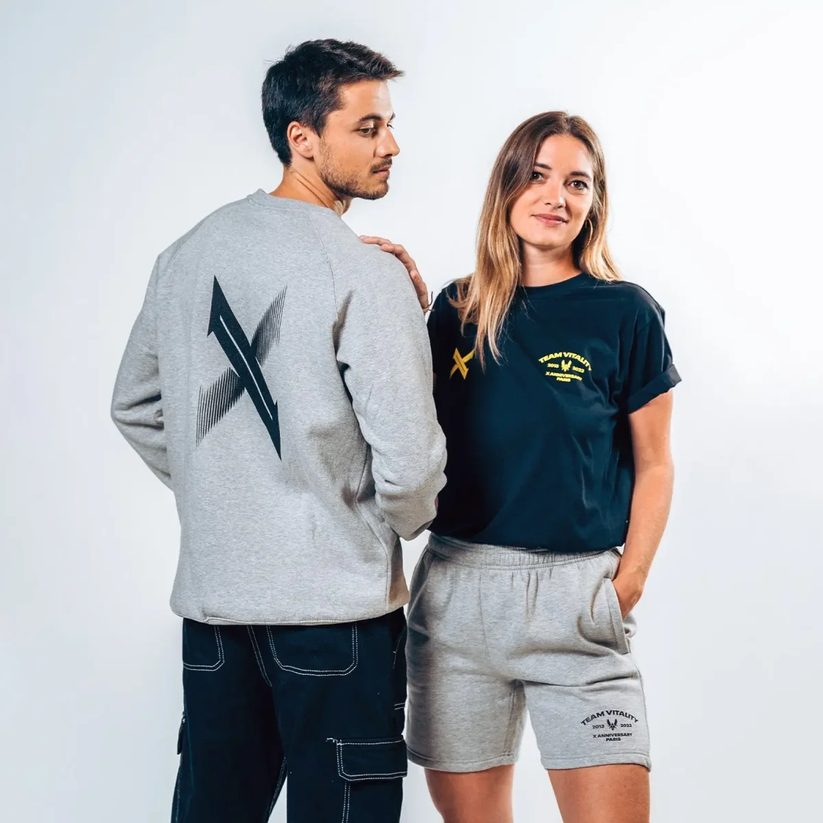 Ce crewneck gris confortable 100% coton ultra doux est parfait pour t’accompagner partout. Tu peux retrouver sur l’avant le nom et le logo de ton équipe préférée, accompagné du X symbolisant les 10 ans de la structure. Ce dernier est présent en grand dans le dos. Profite de ce pull pour compléter ton look et représenter fièrement Team Vitality !
