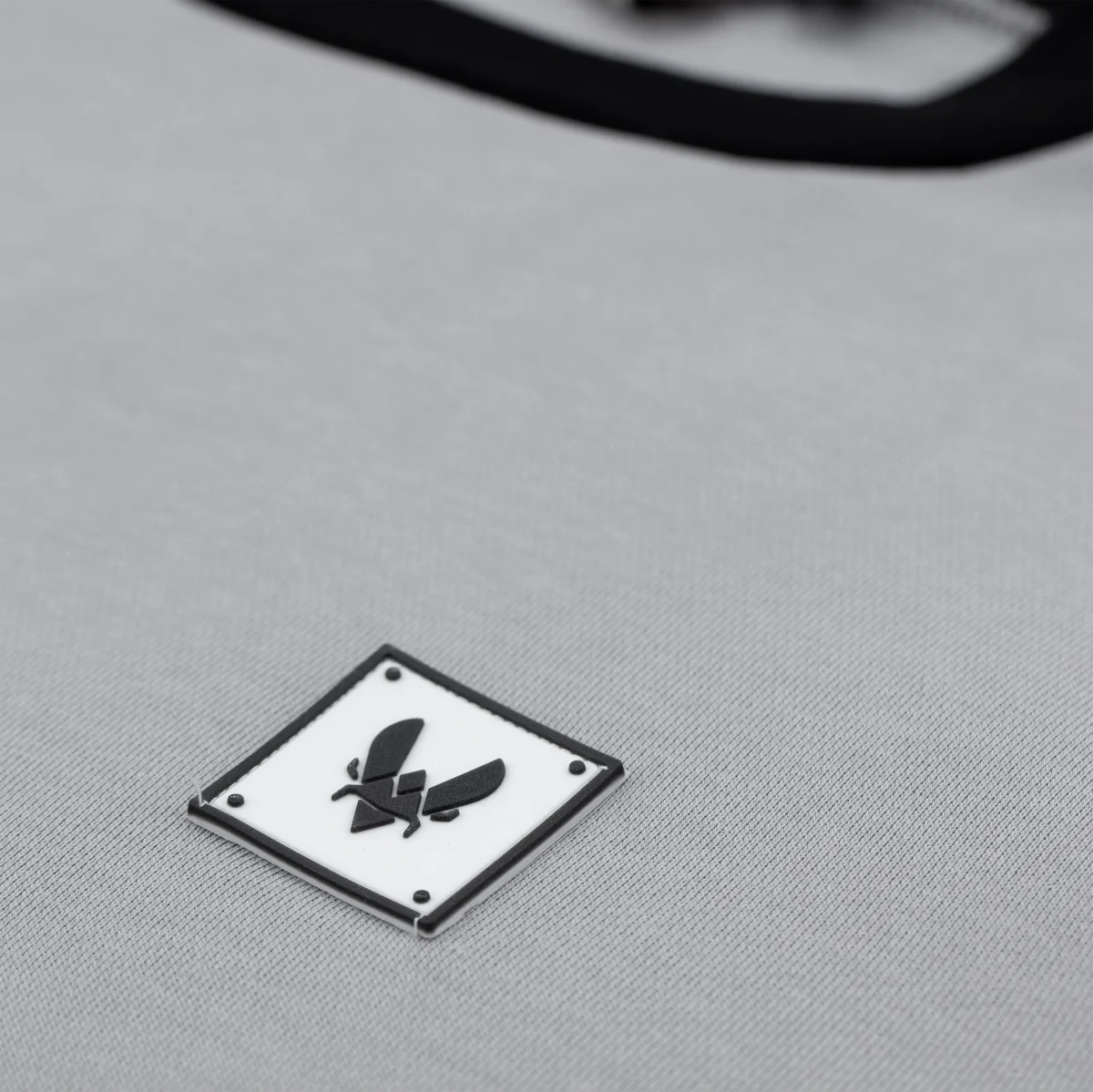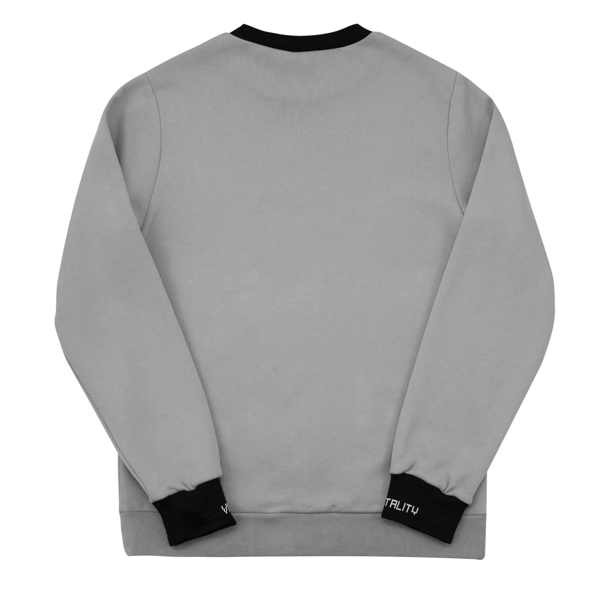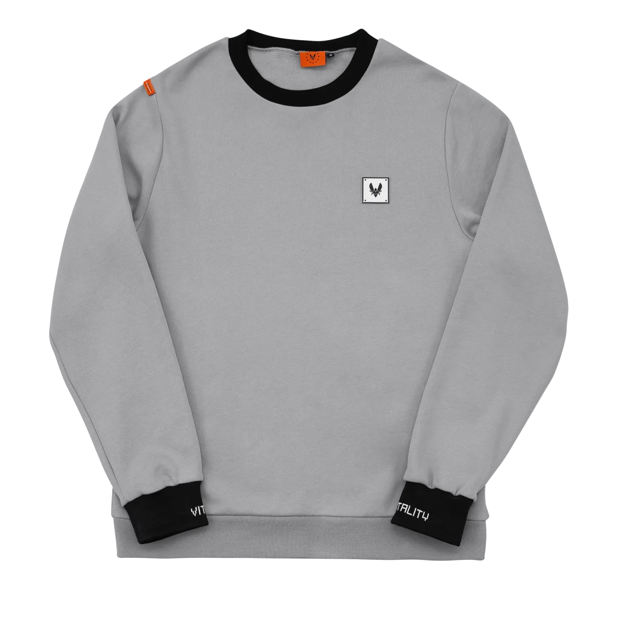 Crewneck Square Team gris : crewneck esports gris 100 % coton, col rond noir, bandes logo aux poignets & patch abeille silicone, style streetwear Team Vitality.