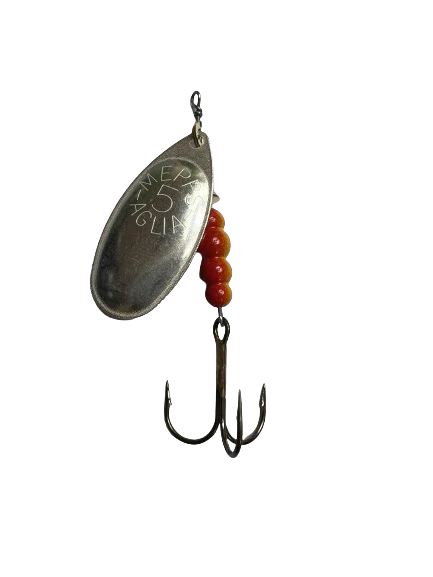C’est la cuiller de base pour la pêche au lancer, dans toutes les eaux, pour tous les poissons. C’est une merveilleuse mécanique de précision qui tourne doux et rond dès quelle touche l’eau.