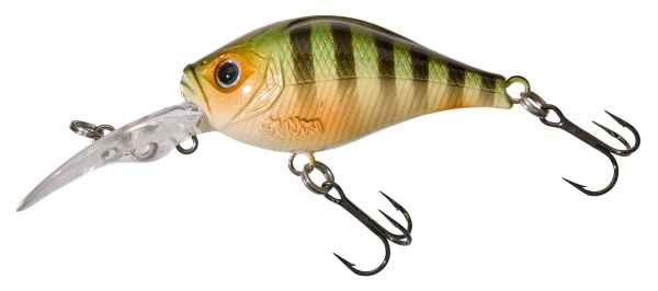 Gunki a dévéloppé ce crankbait de petite taille (46mm) pour qu’il puisse descendre profondément (Diving) à la recherche des plus grosses zébrées. Il se lance avec précision, à bonne distance, (transfert de masse) et traverse rapidement la couche d’eau. Il permet de pêcher au plus près des structures immergées et autour des cassants d’herbiers. Sa nage est un subtil mélange de ‘wobbling’ et ‘rolling’. Offrant peu de prise à la traction, ce D-GIGAN 46F est très agréable à ramener. Il s’utilise dès que les perches sont embusquées le long des berges profondes, au plus près du menu-fretin qu’elles convoitent. Equipé d’un anneau sous la bavette prévu pour recevoir un lest additionnel, vous pourrez alors le faire descendre à des profondeurs inexploitées pour un ‘crank’ de ce gabarit !