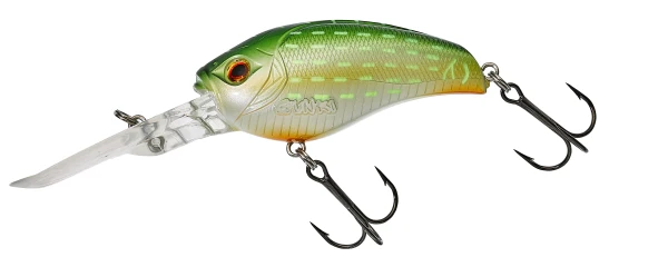 Ce « deep crankbait » (grand plongeur) est destiné aux prospections rapides et profondes des postes à carnassiers. La forme particulière de sa bavette lui permet de basculer rapidement dans un angle qui le fera rapidement arriver à sa profondeur de nage maximale. Emettant de fortes vibrations, sa silhouette aplatie et sa bavette ajourée évitent qu’il ne tire de trop sur la ligne. Adapté aux « bottom taping », le DD GIGAN 73F se dégagera dans une mouvement frénétique des obstacles heurtés sur le fond. Irrésistible pour un carnassier alerté par le « brouhaha » généré à sa proximité ! En ‘trolling’ (traine) il pourra atteindre six mètres de profondeur.