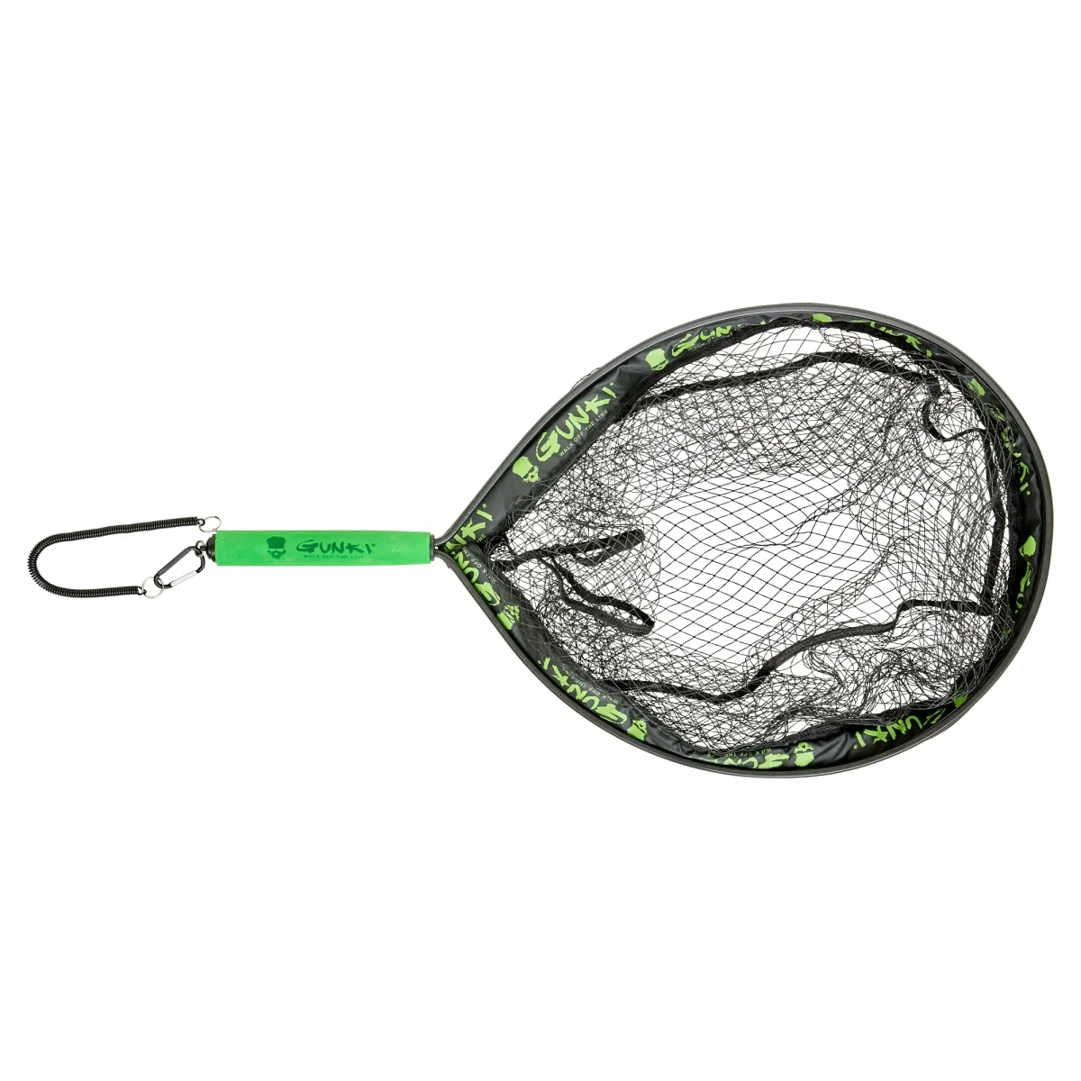 Epuisette flottante Gunki de type ‘raquette’ adaptée aux pêches en float tube. De conception volontairement compacte et peu encombrante, son filet (à fond plat) reste profond pour accueillir des poissons specimen ou servir de bourriche temporaire sur le côté de votre float tube. Elle intègre un clip de fixation aimanté (puissant) dans le manche et peut être fixée à votre embarcation au moyen d’un mousqueton. Un cordon de sécurité permet de retenir l’épuisette si elle vous échappe des mains. Légère, elle est peu encombrante et très maniable. Le filet possède des mailles larges pour favoriser le passage de l’eau et faciliter vos déplacements si vous la laissez posée sur l’eau. Tissé pour obtenir un maillage sans noeud plus respectueux des poissons, il est également enduit de PVC pour limiter les emmêlements et assurer un séchage rapide. Manche et cadre en aluminium. Prise en main confortable avec grip EVA.