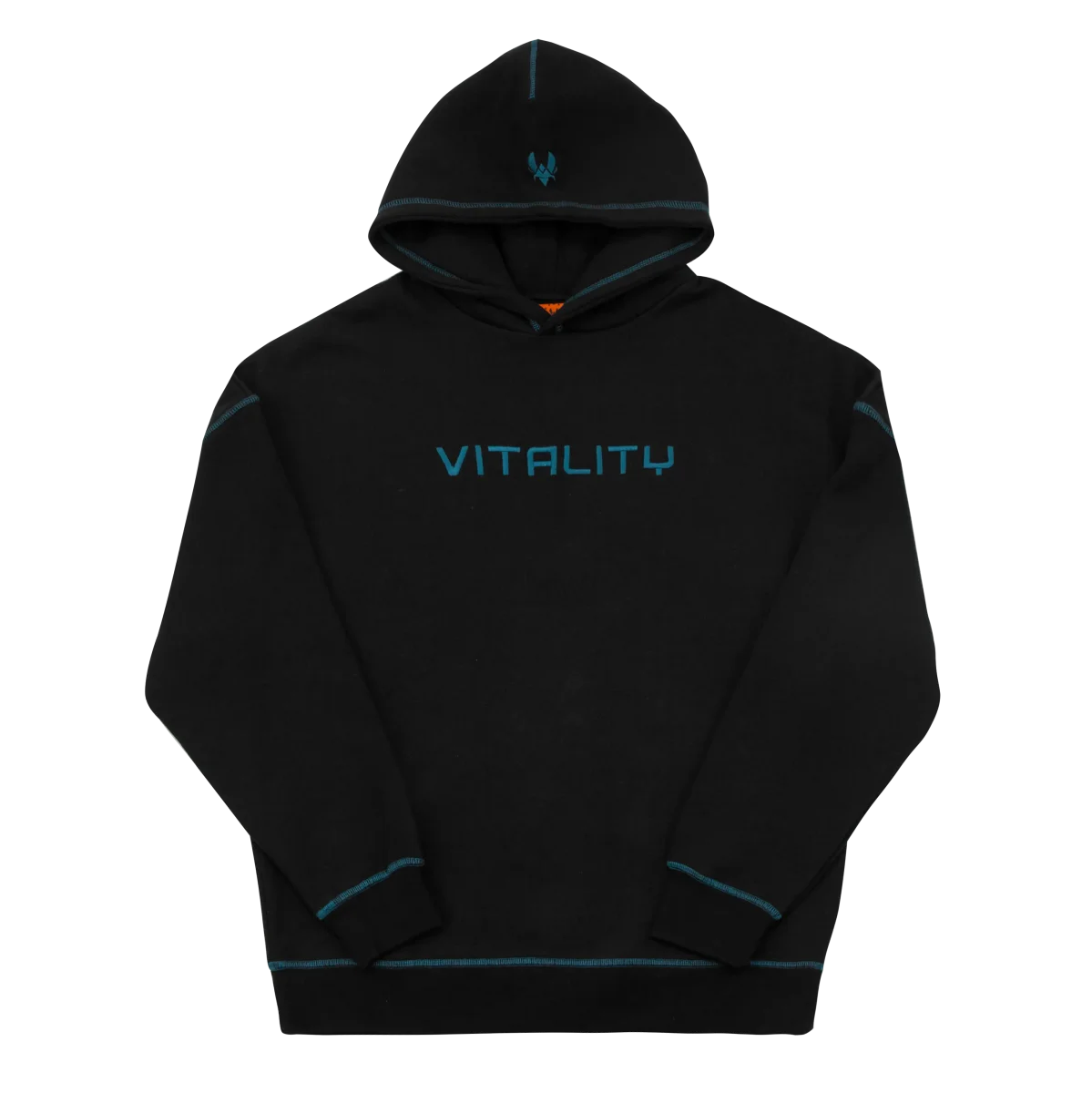 Hoodie basique Vitality noir : hoodie esports oversize 100 % coton, liserés bleus, capuche logo abeille & broderie Team Vitality.