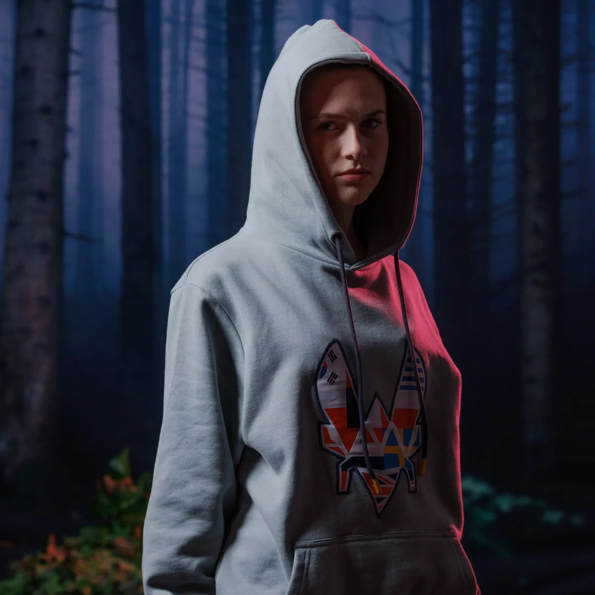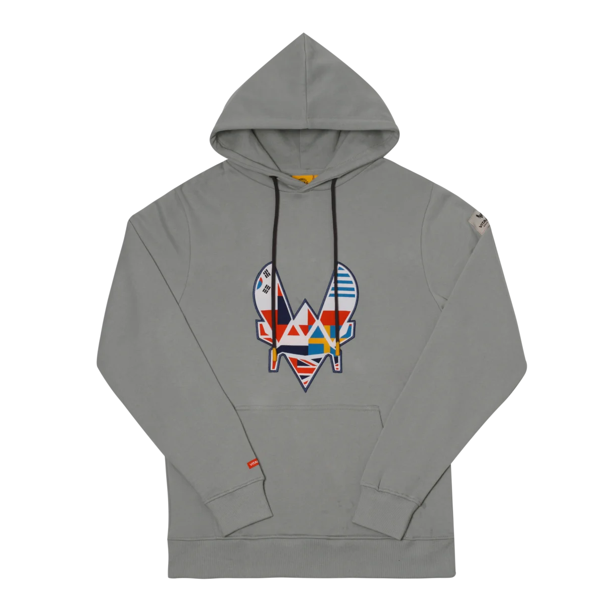 Hoodie World Club gris clair : hoodie esports oversize 100 % coton, patchs brodés & vision internationale Team Vitality.