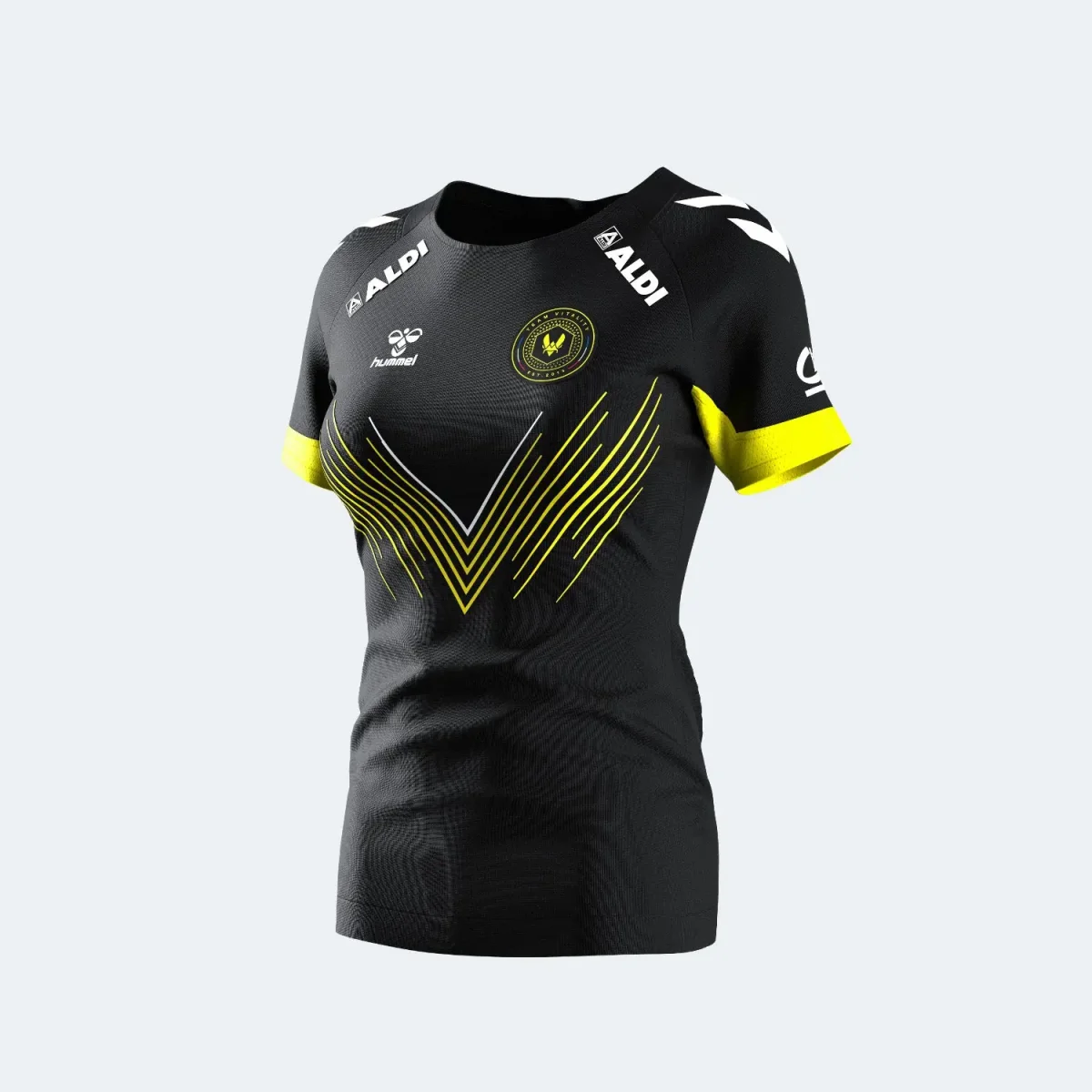 Ce nouveau modèle préserve également les couleurs de Team Vitality et revient au blason iconique rond absent des versions précédentes. Les chevrons de notre partenaire hummel sont à nouveau parfaitement intégrés sur les épaules du maillot.