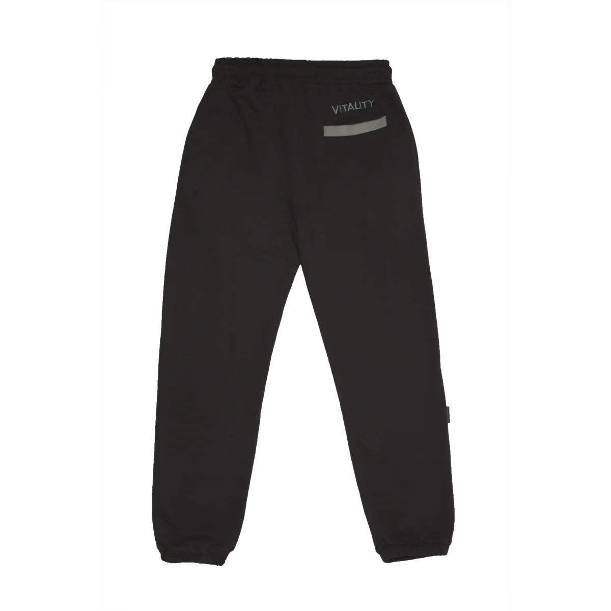 Ce pantalon jogging gris se pare du logo de ton équipe préférée Team Vitality brodé sur la hanche droite. Tu retrouveras aussi une broderie Vitality à l’arrière du jogging, ainsi que deux poches ouvertes sur les côtés. Ce jogging est légèrement oversize et conçu en 100% coton pour un confort optimal.