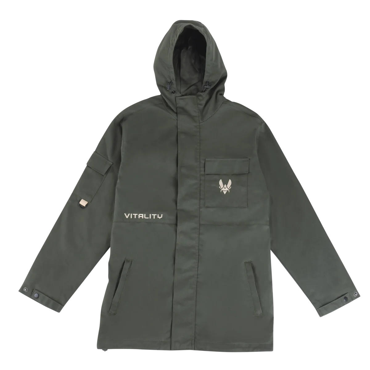 Parka Watch Us : parka esports streetwear verte, capuche réglable, 4 grandes poches & double fermeture, broderies Team Vitality.