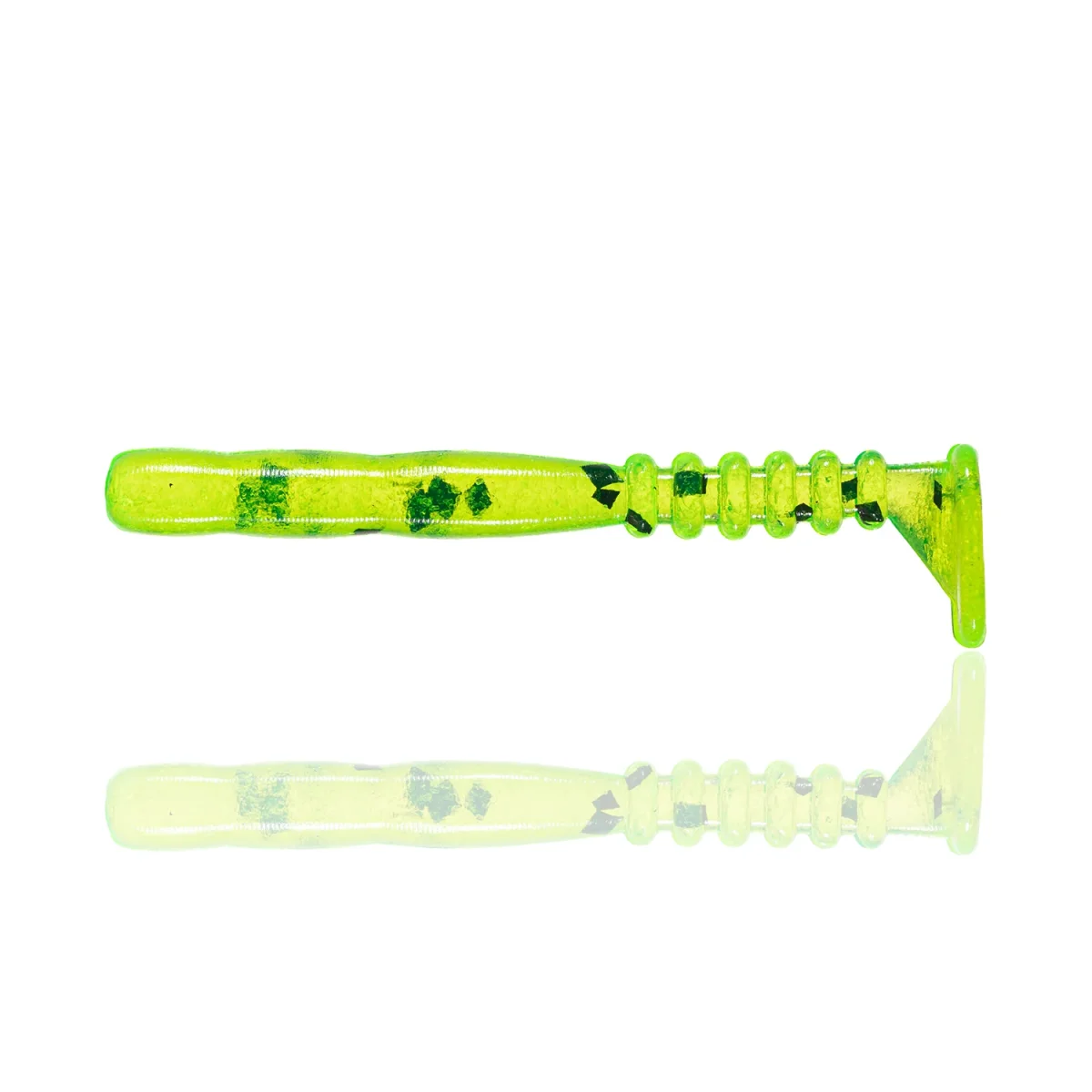 Il tire son succès de sa nage caractéristique qui ne laisse aucun carnassier insensible : sa queue annelée et très mobile produit une fréquence de nage très dynamique, son corps plat de section ovale – Technologie “Oval Body Design” lui procurera un beau rolling très prononcé. Il peut être utilisé sur une multitude de montages : sur tête plombée (surtout avec l’Aji Meba Jig head), en montage drop shot, en trailer de jig… Rien ne lui fait peur !