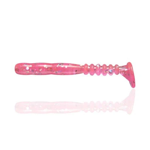 Il tire son succès de sa nage caractéristique qui ne laisse aucun carnassier insensible : sa queue annelée et très mobile produit une fréquence de nage très dynamique, son corps plat de section ovale – Technologie “Oval Body Design” lui procurera un beau rolling très prononcé. Il peut être utilisé sur une multitude de montages : sur tête plombée (surtout avec l’Aji Meba Jig head), en montage drop shot, en trailer de jig… Rien ne lui fait peur !