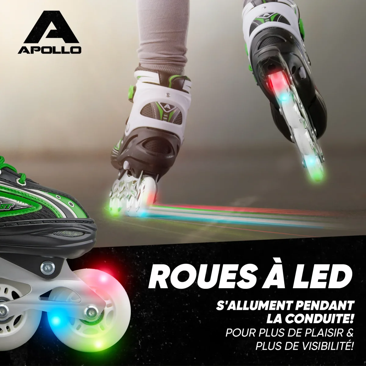 PRODUIT DE MARQUE: Apollo Super Blades X Pro séduisant par un design cool et des roues LED offrent un comportement au roulement optimal grâce au roues haute qualité (70 mm / 82A) et roulements à billes ABEC 15