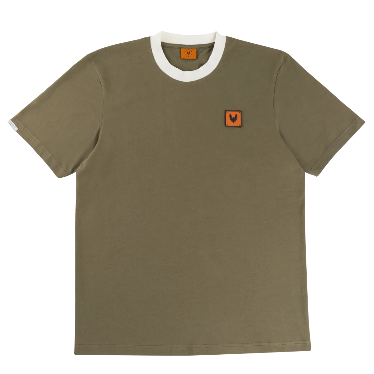 T-shirt Square Team : T-shirt esports streetwear vert 100 % coton, col beige contrasté & patch abeille silicone Team Vitality.