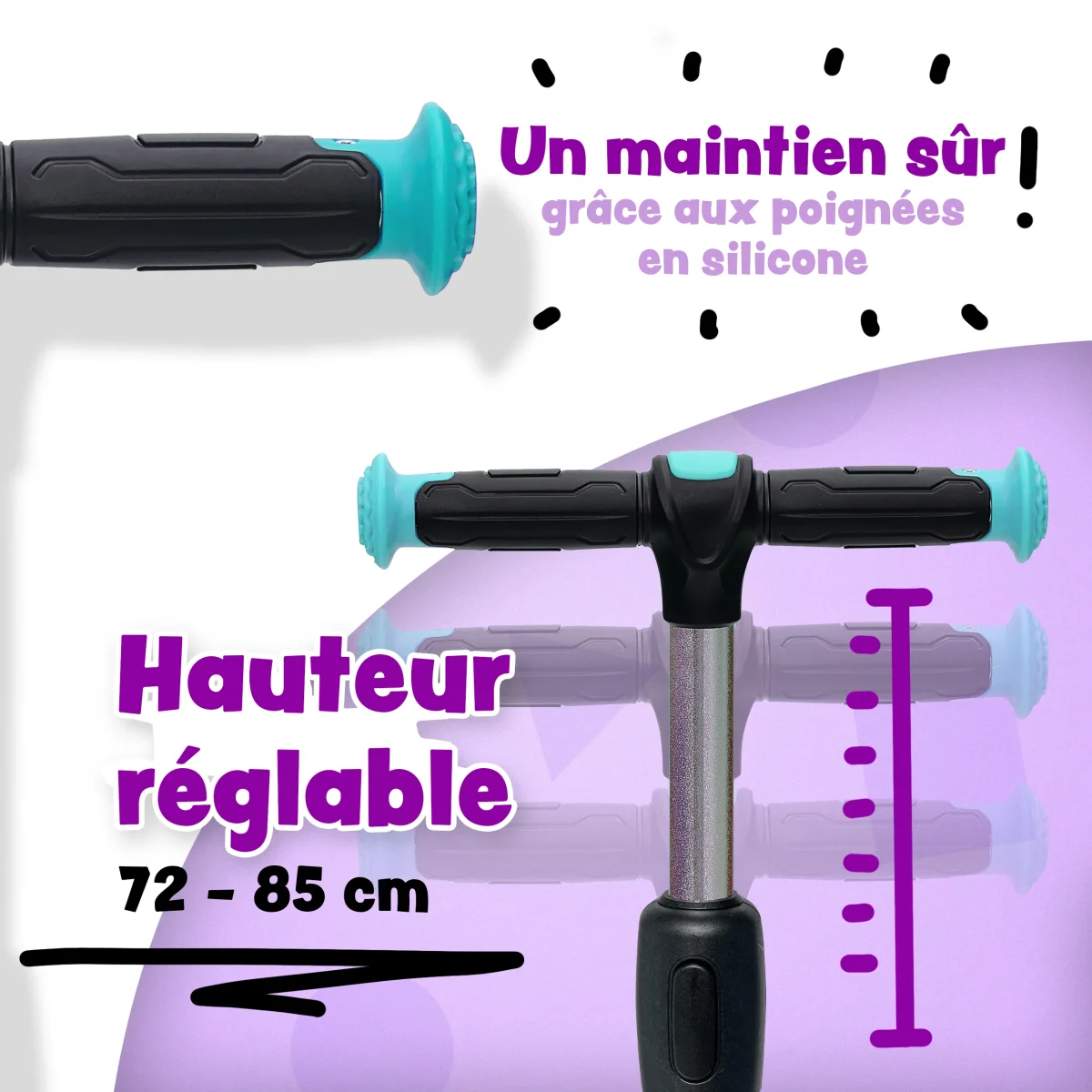 HAUTEUR FLEXIBLE: Trottinette réglable en hauteur sur 3 niveaux, jusqu’à 85 cm. Ainsi, la trottinette reste utilisable pendant des années avec des enfants qui grandissent. Il est donc clair que cette trottinette peut être pleinement utilisée par des enfants de 5 ans.