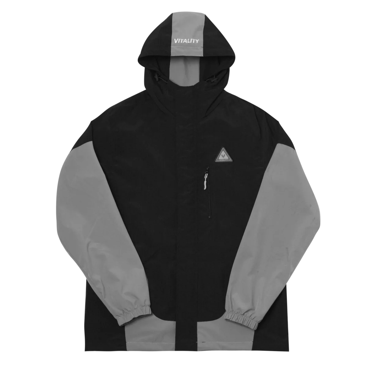 Cette veste coupe-vent Tech bicolore à capuche grise se pare du logo de ton équipe préférée Team Vitality. Tu retrouveras le label Vitality sur la manche droite, ainsi qu’un imprimé réfléchissant Vitality sur la capuche. Sur ce coupe vent, tu as deux poches ouvertes sur les côtés, ainsi qu’une poche zippée sur la poitrine à côté du badge. Les cordons de serrage sur la capuche, ainsi qu’en bas de ta veste te permettront d’ajuster ton coupe-vent comme tu le souhaites. Cette veste en nylon est légèrement oversize pour un confort optimal.